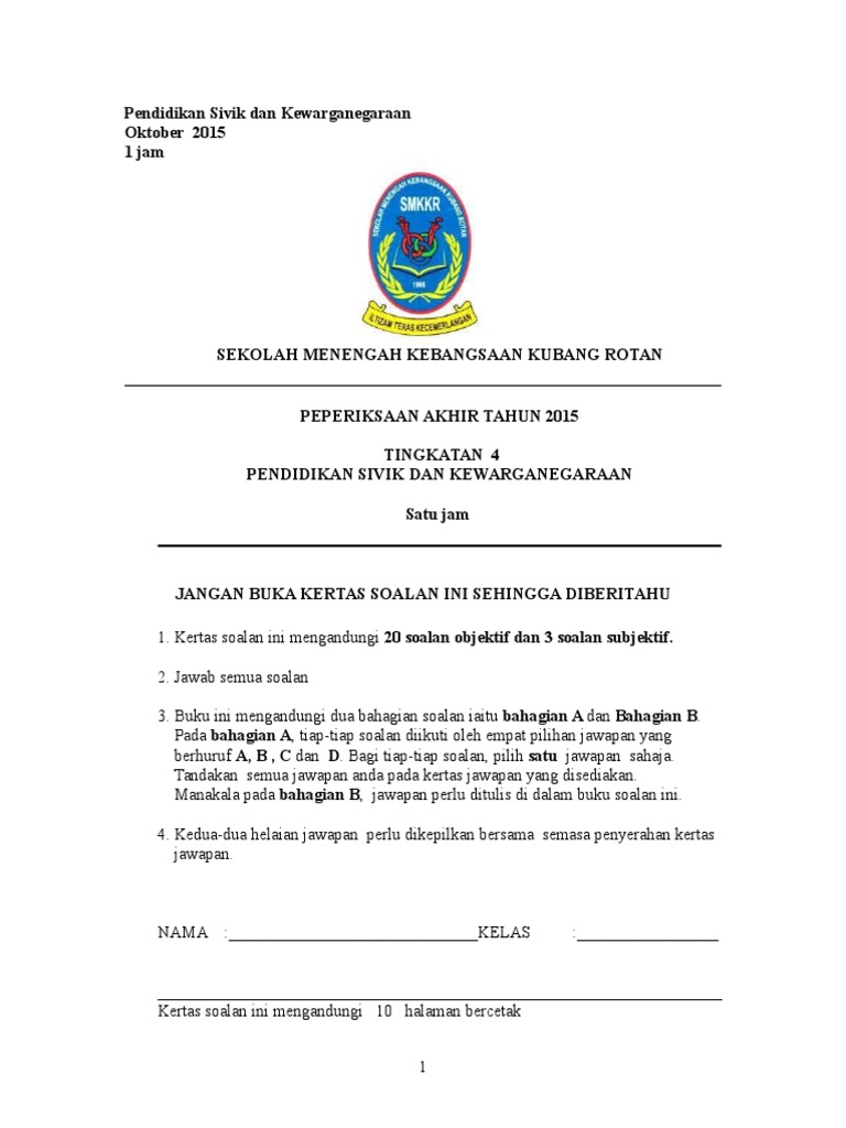 Bank Soalan Ujian Akhir Tahun Tingkatan 4 Sumber Pendidikan from sumberpendidikan.com Sukatan pelajaran psk tingkatan 4. Rancangan tahunan psk tingkatan 5. Saling bergantung antara organisma hidup. Nota pendidikan sivik dan kewarganegaraan tingkata. Blog ini dihasilkan oleh pelajar dari sm sains batu pahat. Share to twitter share to facebook share to pinterest. .2015 pendidikan sivik & kewarganegaraan tingkatan 4 empat puluh lima minit. Di bawah adalah jadual terkini tarikh baharu pksk yang diumumkan oleh kementerian pendidikan malaysia.
